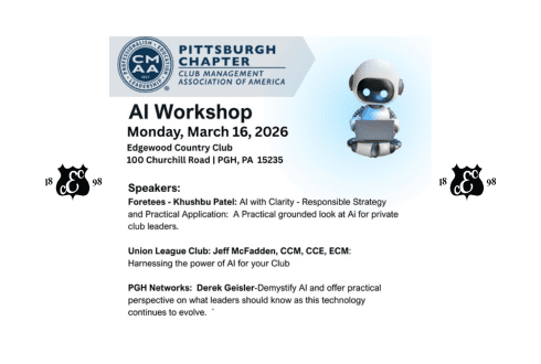 Attend this PGH Chapter CMAA event at Edgewood CC. Email jeanne@pittcmaa.org